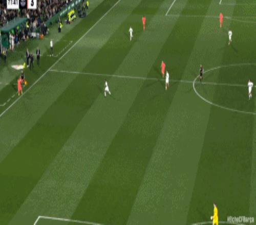 第28分钟拉菲尼亚做球,奥尔莫的打门击中了横梁,逃过一劫的埃尔切,1分钟之后,靠着罗德里格斯的反越位单刀,攻破了霍安加西亚的十指关,将比分追至1平,第34分钟费兰连续两次打门都被门框拒绝,不过在6分钟之后,费兰还是接到德容的传中,在点球点附近推射破门,帮助巴萨带着2-1的比分,回到了中场更衣室。