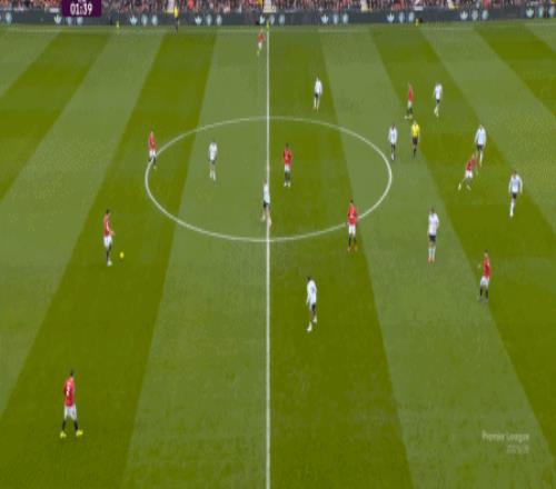 这显然是找对进攻方向的合理收获,但是,曼联的防守压力并未因此减轻,富勒姆在这一侧承压,但也能在这一侧直接向前,不管是在丢球前: