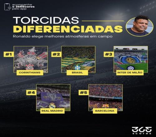 罗纳尔多近日在利雅得 Esports World Cup(EWC)期间接受场边采访,被问到“生涯中主场氛围最震撼的TOP5”,他依次点名:科林蒂安、巴西国家队、国际米兰、皇家马德里、巴塞罗那。
